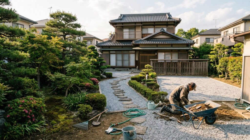 実家の庭じまいとは何か、費用・作業内容・進め方を徹底解説します。放置リスクから伐採・防草シート・砂利敷きの費用相場、業者の選び方、親との合意形成まで網羅。実家の庭じまいを検討中の方が最初に読むべき完全ガイドです。 -