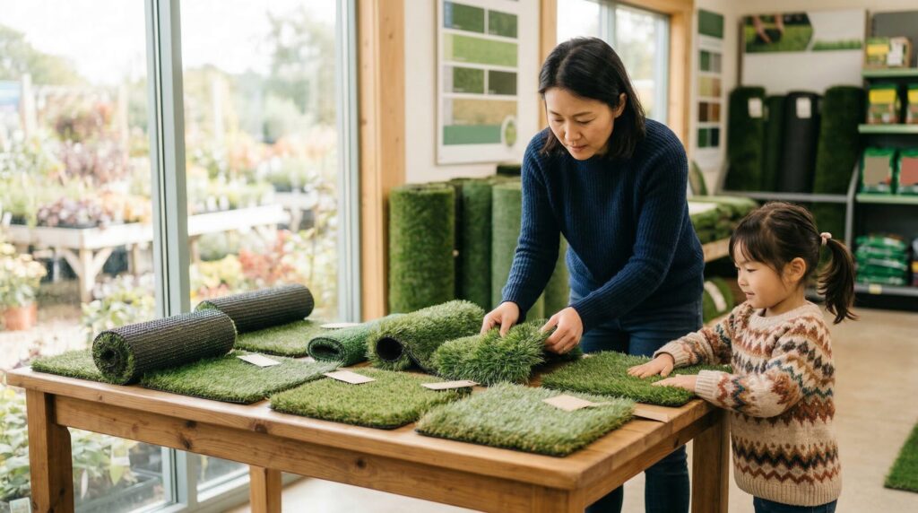 子供の遊び場向けに人工芝を選ぶとき、見た目の安さや見映えだけで選ぶのはちょっと待ってほしいんです。安全性とコスパを両立するために、以下の基準を参考にしてみてください。